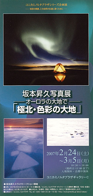 坂本昇久写真展 オーロラの大地で 極北・色彩の大地 2007年2月24日〜3月5日 コニカミノルタプラザギャラリーC http://www.konicaminolta.jp/about/plaza/