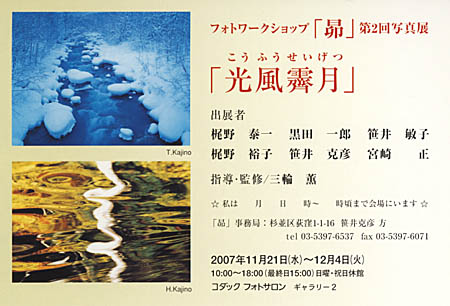 2007年12月14日〜17日 富士フイルムフォトサロン<東京>スペース1・2・3 http://fujifilm.jp/photosalon/